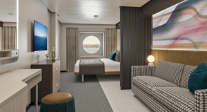 These staterooms feature a large round window and a queen-size bed. Staterooms are priced exclusively for solo travelers and include access to the private Studio Lounge.
