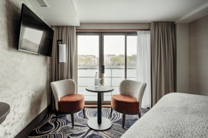The VIVA VOYAGE invites 152 guests to enjoy and relax in its 76 cabins. The cabins on the Diamond and Ruby Decks all have French balconies, inviting guests to enjoy the passing scenery from the comfort of their beds. The Diamond Deck features mostly twin cabins, which are 15 m² in size, and four 19 m²size Junior Suites. The Ruby Deck also has mostly 15 m² large twin cabins and additionally two 19 m² large Junior Suites. The Emerald Deck has 15 m² large twin cabins and one 19 m² large Junior Suite, all of which have windows that cannot be opened. All cabins are perfectly equipped with flat-screen TV, included mini-bar, beauty products by RITUALS®, hairdryer, safe, air conditioning, shower and toilet. An elevator connects the lobby with the restaurant, the Ruby and the Diamond Deck. To the Emerald Deck 6 steps lead down.