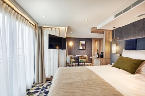 Our first own new building, the VIVA ONE invites with 88 cabins up to 176 passengers on feel-good moments on board. On the Diamant Deck there are four luxurious suites, which with 25 m² size and a balcony (approx. 2 m²) invite you to enjoy the beautiful view. On the Diamond Deck, as well as on the Ruby Deck, there are 18 m² Junior Suites, which have a French balcony. The main part of the cabins is made up by 2-bed cabins with 17 m² size. These have French balconies on the Diamond and Ruby decks and non-opening windows on the Emerald deck. All cabins are perfectly equipped with flat-screen TV, included mini-bar, Nespresso® machine, Beauty products from RITUALS®, hairdryer, safe, air conditioning, shower and toilet.
