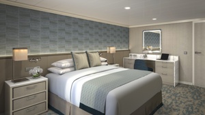Like the ubiquitous black gown, timeless elegance is a universal staple of Oceania Sonata's 288-square-foot Veranda Staterooms. Within an expansive living area, residential warmth is reflected in soothing neutral shades with splashes of jewel tones. High-tech amenities and ample closet space are de rigueur. The embrace of a lush queen-size Tranquility Bed is complemented by a lavishly appointed bathroom with a large vanity and revitalizing rainforest shower. A comfortable sitting area is a relaxing prelude to time spent on the expansive private veranda, watching the world glide past.