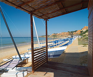 Situated in the resort of Praia de Falesia. The beach is reached using the cliff top elevator followed by steps and a graduated board walk.