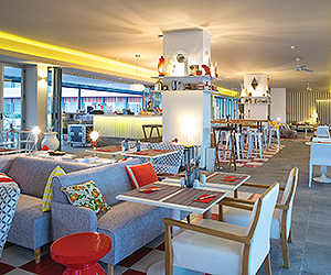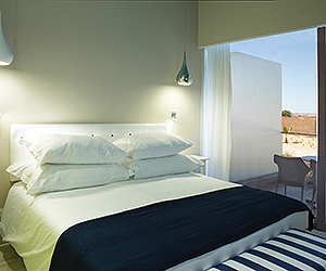 Double deluxe pool view rooms with air conditioning sleep 2 adults complete with phone, free wifi, TV's LED, pay TV*, hairdryer, digital safe, mini bar, iron and ironing board (if available). The rooms including the bathroom area are designed in an art deco style with is modern and comfortable. Deluxe Sea View rooms also sleep 2 adults and consist of the same facilities of the pool view room with supplement. Sea View Suites are slightly larger rooms which sleep 3 adults or 2 adults and 2 children with sofabed. Single rooms available on request.