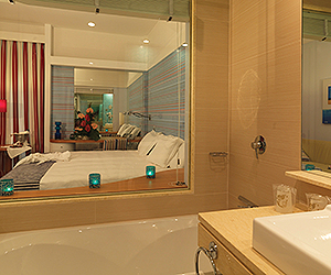 Twin or double beds land view rooms sleep 3 adults, 3rd bed is a sofa bed. Garden or seaview rooms are also available with supplements. All rooms have air conditioning, satellite TV, telephone and safety deposit box. There is a table & chairs on the balcony.