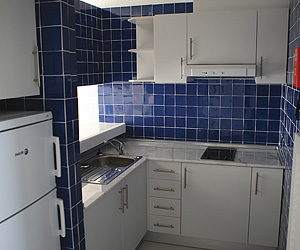 Air conditioned studio sleep two adults. Air conditioned one bedroom apartment sleep 3 adults & infant*. Living room with a sofa bed, twin bedroom, bathroom with bath, kitchenette with 2 ring hob, microwave, kettle, coffee machine, toaster, TV, telephone, safety box* with bathroom with bath. Apartments with pool view.