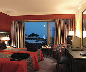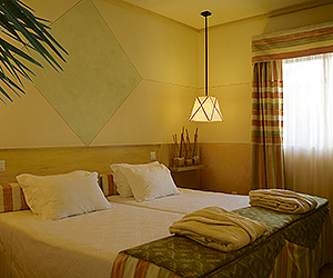 Twin rooms sleep 2 adults plus cot on request (2 adults & 1 child in sea view rooms). All rooms have air conditioning, TV, telephone, safety deposit box*, free internet access and balcony. Resort Apartments: Studio sleeps 2 adults and 1 child. 1 bed apartment sleeps 3 adults or 2 + 2. 2 bed apartment sleeps 5 adults and 1 child. Resort apartments on self catering, have a kitchenette. Apartments are near the main building.