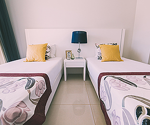 Fully air conditioned two bedroom sleep 5 adults are fully furnished and decorated to a very high standard with a sofa bed in the living area for 5th person, a fully fitted modern kitchen with fridge freezer, washing machine, TV, safe* , ironing board, iron, free Wi-Fi and balcony or terrace.