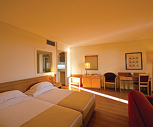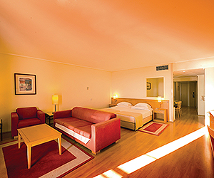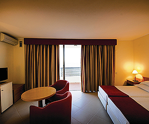 Standard twin rooms sleep 2 adults. Balconies are on request only, cannot be guaranteed before arrival. Side sea view rooms and balcony sleep 2 adults with supplement. Junior suite with sea view & balcony sleep 3 adults or 2 adults & 2 children with supplement. All rooms have air conditioning, cable TV,free wifi, safety deposit box*, direct dial telephone, hairdryer and minibar*. Bathrooms have bath/shower. Single rooms are available with supplement and on request.