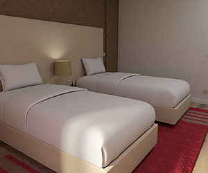 Air conditioned twin garden view room sleep 2 adults and one child with tea & coffee making facilities, flat screen TV , free Wi-Fi, safety deposit box and furnished terrace. Bathroom with bath/shower and hairdryer. Pool view rooms are available with supplement. Family rooms with pool view are larger rooms with two separate areas having a king sized bed and a double sofa bed with two TV’, a large terrace and sleep 2 adults and 2 children.