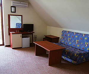 Double room will sleep 3 adults or 2 adults and 1 child (3rd person sleeps on extendible armchair. Family rooms will sleep 4 adults or 2 adults and 2 children. All rooms have air conditioning with bathroom with hairdryer, cable flat TV screen, telephone, mini fridge, hairdryer, shower room and balcony or terrace.