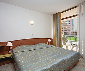 One bedroomed apartments sleep 2/3 adults or 3 adults and one child or 2 adults and 2 children. The extra bed in living the room is a fold out sofa bed. The apartments have been finished to a high standard with all the facilities required for a comfortable holiday, including bathroom, a kitchenette with mini fridge, hot plates, microwave, satellite TV, telephone, safe*, balcony.