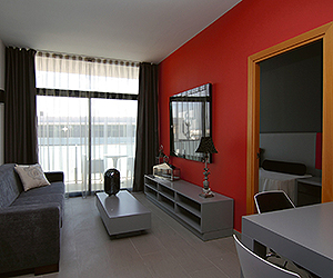 Standard rooms sleep max of 3 adults or 2 adults + 2 children. All rooms are decorated to a high standard and feature a double bed in the bedroom and sofa bed in the living area. One bedroom suites sleep max 4 adults and 2 bedroom suites sleeping up to 6 adults. All rooms have air conditioning, safe* kitchen with refrigerator, tea/coffee facilities, microwave, private bathroom with hairdryer (on request) shower and balcony