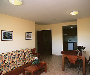 One and Two bedroom apartments with air conditioning, complete with bathroom, living area with 2 single sofa beds, kitchenette and a fully furnished balcony or terrace. One bedroom apartments have one bedroom with twin beds and are located in the main block and sleep up to 4 persons.