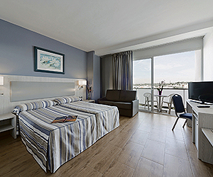 Standard rooms sleep max of 4 adults or 2 + 2 children. All air conditioned rooms feature a flat screen television wi-fi* safety deposit box* balcony or terrace, hairdryer, private bathroom containing a bath or shower. Rooms with sea views available on request with supplement.