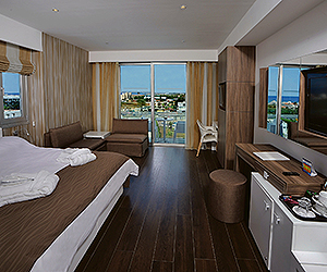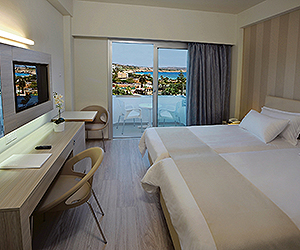 Air conditioned superior rooms sleep 2 adults & 1 child with TV,telephone, bathroom with bath or shower and hairdryer, mini fridge, safety deposit box and a balcony with an inland view. Side Sea View and Front Sea View rooms are available with a supplement and feature the same amenities as the superior inland view room.