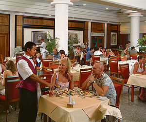 Twin rooms inland view sleep up to 3 people and have air conditioning, TV, ensuite with hair dryer, telephone, mini fridge*, safe* and private balcony. Twin Side Sea View, Front Sea View & Pool View rooms available with a supplement. One Bedroom bungalow sleep max 4 people,separate bedroom with twin beds & 2 sofa beds in the living room,ensuite, hairdryer, air-conditioning,TV, telephone, safe*, fridge, lounge kitchenette area, kettle, toaster and balcony or terrace. Studio bungalows sleep upto 3 people also availableFacts Board Basis:Half Board, Cleaning & towel change daily, Linen change: twice weekly, No of floors:5 No of lifts:2 No of rooms: 174 Official rating 3* Child age under 12 yearsFacilities Outdoor pool Indoor pool childrens pool Terrace garden bar/ snack bar restaurant table tennis billiards children's playground massage* fitness centre sauna tennis court video games* Pool table 24 hr reception laundry* Free Wifi *= local cost