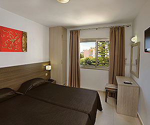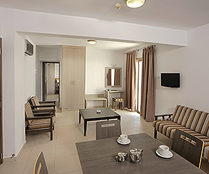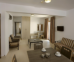 Accommodation is in studios and 1 bedroom apts. Studios sleep max 3 adults and 1 bedroom apartments sleep max 3 adults or 2 adults and 2 children. All rooms have been recently refurbished and feature TV, air conditioning, direct dial telephone, safety deposit box*, kitchenette, fridge, kitchen utensils, and furnished balcony. Bathrooms have bath/shower.
