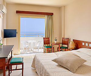 Air conditioned standard twin room with side sea view or sea view with supplement sleep 3 adults (3rd adult in extra bed) or two adults and one child and have wifi*, TV, fridge, safe*, phone and balcony. Bathroom with bath.
