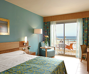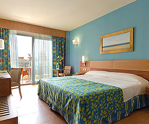 Air conditioned double room sleep 3 adults or 2 adults and 1 child (extra rollaway bed) tea/coffee making facilities, mini bar*, TV, phone, safety deposit box* and terrace/balcony. Bathroom with bath/shower and hairdryer. Interconnecting family rooms sleep 4 adults and 2 children are available with supplement. Side sea view double rooms, Family rooms ( no seaview) or Junior suites with full sea views carry supplements.