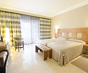 Air conditioned double rooms sleep 3 adults or 2 adults & 1 child. Sat TV, phone, mini bar*, safety deposit box* and furnished balcony or terrace. Bathroom with bath, separate shower, hairdryer. Rooms with views have a supplement and are recommended. Junior Suites sleep 3 adults or 2 adults & 2 children are available with supplement.