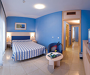 Air conditioned double rooms sleep 3 adults or 2 adults and 1 child and an infant (extra bed will be a sofa bed), TV, telephone, fridge, balcony and safety deposit box*. Family rooms, accessed by steps located in pool area, have two rooms - one double and one twin room. Bathroom with bath and shower. (minimum occupancy - 2 adults + 2 children, maximum occupancy - 4 adults & cot) on request basis with supplement.