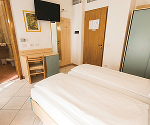 Standard double air conditioned rooms sleep up to 3 people, looking onto the hotel's interior courtyard, satellite tv, wifi, safe, mini bar, telephone, bathroom with shower, hair dryer. Rooms with views available with supplements.