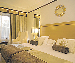 Twin or double rooms with a garden view are decorated to a high standard and have air conditioning, satellite TV, mini bar, direct dial telephone, wifi internet, safety deposit box and hairdryer. Some rooms have a balcony. Grand Deluxe and seascape rooms are available with a supplement.