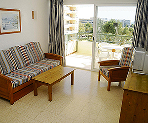 Studio apartments will sleep a maximum of 3 adults or 2 adults and 1 child. One bedroom apartments will sleep a maximum of 4 adults or 2 adults and 2 children. Two bedroom apartments will sleep a maximum of 5 adults or 4 adults and 2 children. All apartments have bathroom, fully equipped kitchenette with 2 ring hob,fridge, telephone, satellite TV, lounge/dining area with sofa bed and balcony or terrace. Apartments do not have air conditioning.