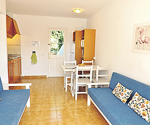 One bedroom apartments will sleep maximum 2adults or 2 adults and 2 children (under 12 years) and have bathroom with shower/bathtub and hairdryer, small kitchenette with 2 ring cooker, fridge and microwave. All one bedroom apartments have a terrace. Two bedroom apartments will sleep maximum 4 adults or 4 adults and 2 children and have bathroom with shower/bathtub and hairdryer, kitchen with 4 ring cooker, fridge and microwave. All two bedroom apartments have a terrace. Please note that all apartments are situated on ground floor.