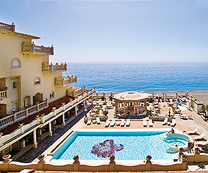 Swimming pool sun terrace with sun beds and parasols private beach with sunbeds*/parasols* carry local charge water sports* available locally pool bar wellness centre jacuzzi sauna turkish bath wi-fi*