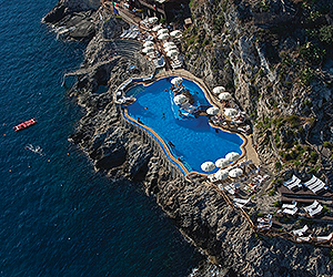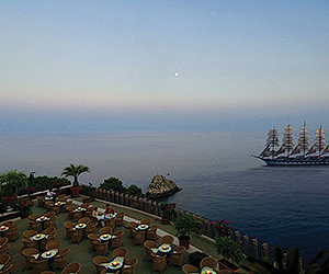 The ATA HOTEL Capotaormina is built on its own rocky peninsula. The property is designed to maximise the stunning surrounding views. Access to the hotel's private beach is through a lift shaft carved into the rock or to reach the sea level swimming pool you proceed through an amazing rock tunnel. A truly romantic hotel with an excellent range of facilities and superb views make this hotel a perfect choice for both honeymooner's and couples.