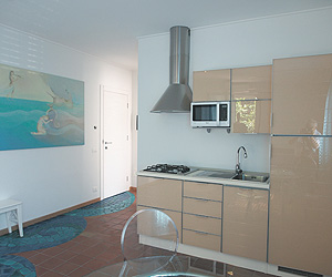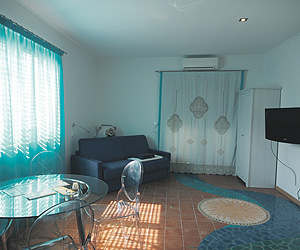 Standard studio apartment with window or balcony will sleep maximum 2 adults. De luxe apartment with terrace or patio, on request basis with supplement, will sleep maximum 4 adults. All apartments have fitted bathroom, kitchenette with microwave and fridge, air conditioning, flat-screen TV.