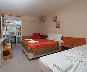 Bright and spacious renovated Twin rooms that sleep up to 3 adults or 2 adults and 2 children. Each room has satellite tv, direct dial telephone, air-conditioning and balcony. Bathrooms are fully equipped with a shower and hair dryer. Family rooms sleep 2adults and 2 children or 3 adults and a child.