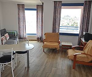 One bedroom apartments are spacious and sleep up to 4 adults with twin or double bedroom. All apartments are brightly furnished with a large open-plan living area with a double sofa bed or camp bed, a kitchenette in the lounge area with two ring hob, fridge and kettle. There is a full bathroom with shower and a hair dryer. All apartments have satellite TV and the air-conditioning is payable locally, direct dial telephone and balcony or terrace.