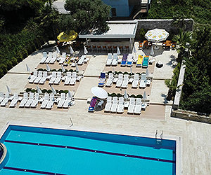 Situated in a quiet area of Ladies Beach but yet with everything on your doorstep. Perched on a hill and only 250m to Ladies Beach where you will find a wide selection of bars, restaurants and shops. The centre of Kusadasi is 2km away and be easily reached by the local Dolmus or by taxi.