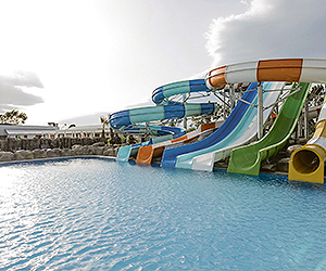 3 swimming pools 1 water slides pool 1 indoor pool kids pool with slides kid club (4-12yrs) 2 restaurants - 1 buffet and 1 A la carte 5 bars sauna Turkish bath Spa centre* massage* hair dressers* shopping centre* doctor* laundry* TV corner Game hall* billiards* animation tennis basketball table tennis beach volley aerobics aqua gym banana boat* jet ski* canoe pedalo diving* water ski* wifi sunbeds and umbrellas beach towels *= local cost