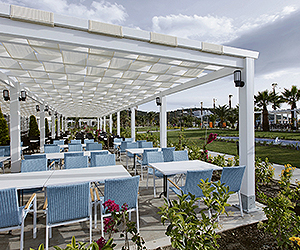 Located in the Bay of Pamucak at sea level. The Palmwings Ephesus is less than a 10 minute drive to the centre of Kusadasi and is serviced by the local Dolmus that stops just outside the hotel.