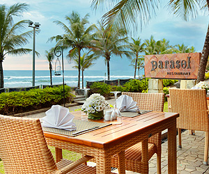 Bali Mandira is located on Legian Beach (nestled between Seminyak & Kuta Beach) with a lovely white sandy oceanfront beach and panoramic ocean views surrounded by the most beautiful and spectacular lush tropical gardens. Its location is just steps away from all that Kuta & Legian are famous for, excellent shopping, traditional markets, Watersports, Dining and Clubbing. Well known for its friendly staff and warm Balinese hospitality, The Bali Mandira will ensure a wonderful stay for every guest.