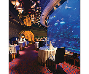 A fine selection of 10 restaurants and bars including the Al Muntaha Restaurant suspended 200m high with panoramic views over the Arabian Gulf. The Al Mahara Seafood Restaurant offers views of tropical fish and coral reefs with the entrance to the restaurant via a simulated undersea voyage. Al Iwan Restaurant offers traditional and international cuisine. The Assawan Spa offers a luxurious health and fitness centre, other facilitis include indoor and outdoor pools, private beach with exclusive services at the adjacent Beit Al Bahar villas and access to a wide range of watersports at the neighbouring Jumeirah Beach Hotel.
