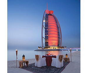 Rising spectacularly out of the Azure blue water of the Arabian Gulf, Hotel Burj Al Arab presides majestically over the Jumeirah Beach Resort and the coastline of Dubai. Ingenuity, inspiration and originality have been combined to create an environment of classic elegance. Exquisite furnishings, luxurious fittings and standards of personal service exceeding the expectations of the most discerning guests.