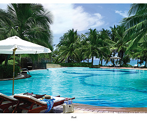 4 restaurants seafood, fine dining and authentic Chinese, The Palms restaurant for all day dining, cocktail lounge, poolside bar, a beautiful swimming pool, sun terraces, gym and fitness centre. The wonderful Jiva Spa with six treatment rooms with open verandahs wrapped around a central courtyard dotted with sacred temple trees and a reflecting pool. Water sports are available at a nearby lagoon. Evening entertainment includes regular live shows and music, and a night club open on Fridays and Saturdays.